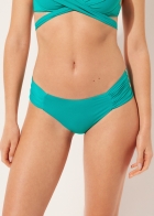 Классические плавки с драпировкой, регулирующей высоту боковых деталей. Благодаря особой мягкости ткани изделие приятно прилегает к коже, создавая ощущение легкости и комфорта. Сплошная подкладка и невидимые швы.