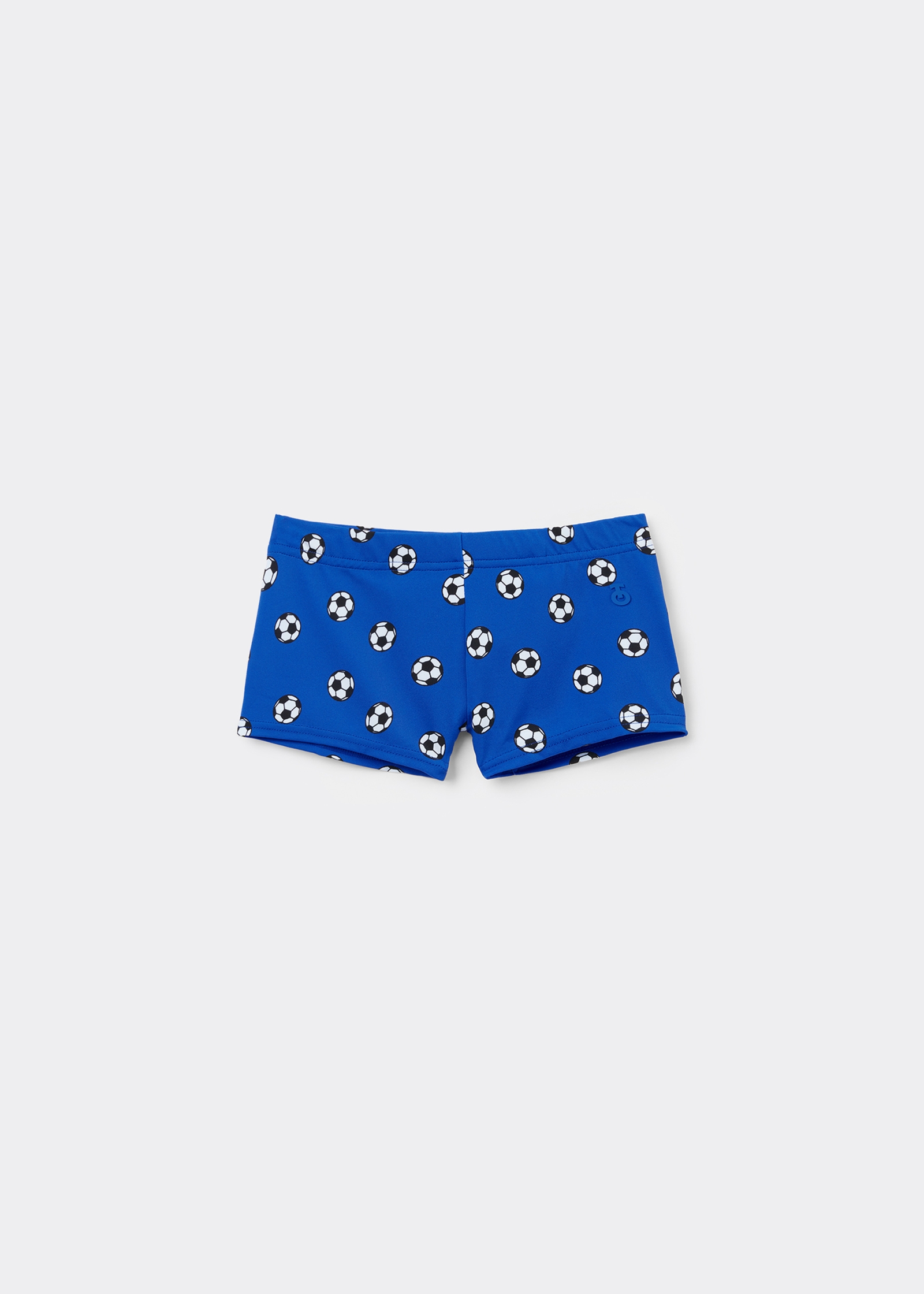 Плавательные шорты для мальчиков. Модель из микрофибры с завышенным вырезом бедра и закрытым кроем сзади. Эластичный пояс-кулиска, регулируемый шнурком с внешней стороны. Спереди на подкладке. Эти плавки-шорты из капсульной коллекции Mini me предназначены для создания парных нарядов папы и сына (линейка Panama).