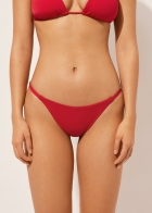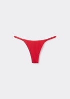 Плавки стринги с узкими регулируемыми тесемками по бокам. Слегка закругленная спереди линия талии позволяет носить плавки как обычно или делать вырез бедра более высоким, подчеркивая стройность фигуры. Благодаря особой мягкости ткани изделие приятно прилегает к коже, создавая ощущение легкости и комфорта. Сплошная подкладка и невидимые швы.