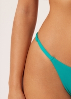 Плавки стринги с узкими регулируемыми тесемками по бокам. Слегка закругленная спереди линия талии позволяет носить плавки как обычно или делать вырез бедра более высоким, подчеркивая стройность фигуры. Благодаря особой мягкости ткани изделие приятно прилегает к коже, создавая ощущение легкости и комфорта. Сплошная подкладка и невидимые швы.