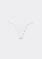 Плавки стринги с узкими регулируемыми тесемками по бокам. Слегка закругленная спереди линия талии позволяет носить плавки как обычно или делать вырез бедра более высоким, подчеркивая стройность фигуры. Благодаря особой мягкости ткани изделие приятно прилегает к коже, создавая ощущение легкости и комфорта. Сплошная подкладка и невидимые швы.