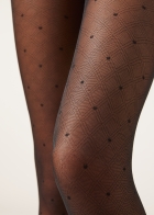 Женские прозрачные колготки с рисунком «ромбы» и «горошек» по всей поверхности. Плотность 30 ден. Невидимая ластовица из хлопка.