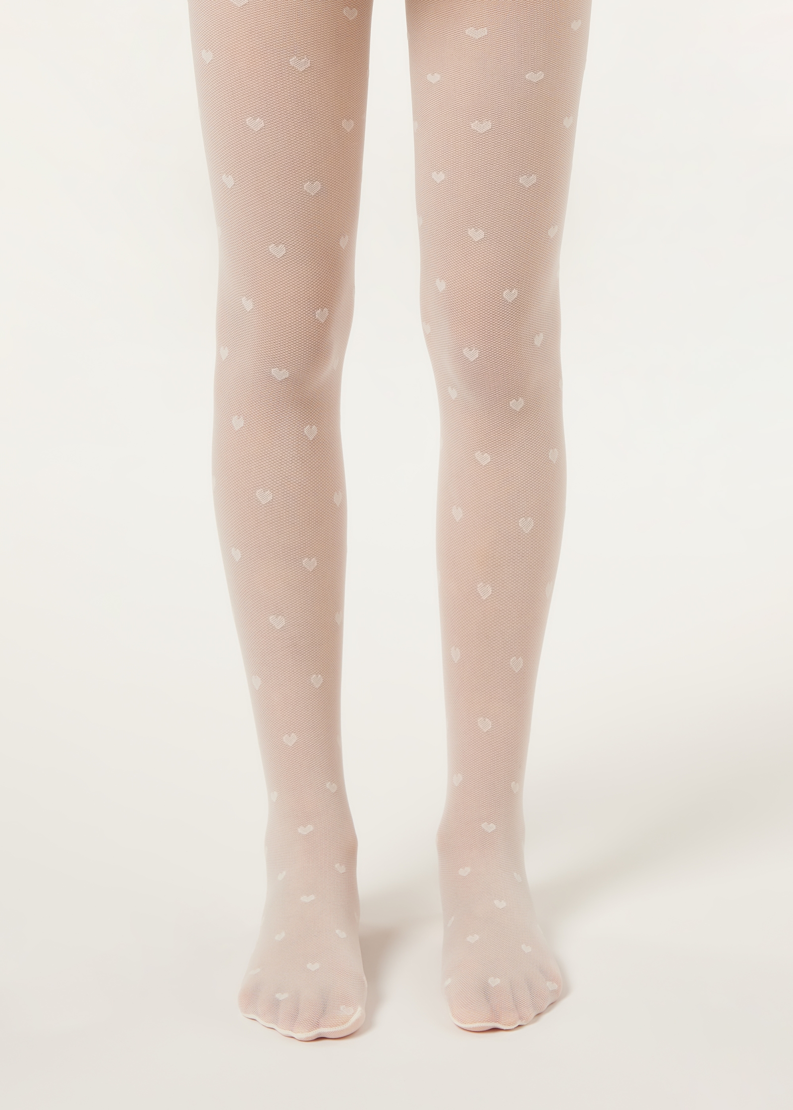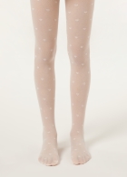 Колготки из микротюля для девочек. Плотность 30 ден. Очаровательный узор «сердечки» по всему изделию. Эти мягкие, легкие и комфортные колготки придадут деликатную нотку элегантности детскому наряду.