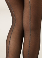Прозрачные колготки, украшенные сзади изящной блестящей полоской из золотистых блесток по всей длине ноги. Плотность 30 ден. Мягкий пояс на талии и хлопковая ластовица дарят ощущение комфорта.
