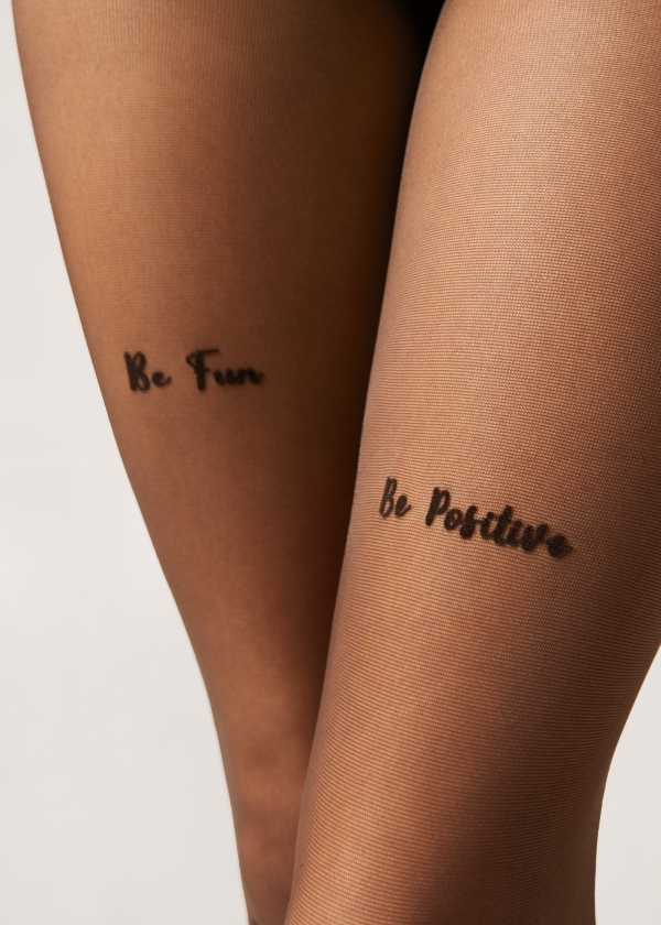 Прозрачные колготки с бархатистым принтом в тон в виде культовых надписей «to be». Плотность 30 ден. Мягкий пояс и хлопковая ластовица дарят ощущение комфорта.