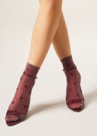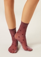 Женские прозрачные носки с блестками и мелкими сердечками. Плотность 20 ден. Верхняя часть собирается мягкими складками на щиколотке. Мягкий бортик с необработанным краем. Элегантные легкие носки, которые идеально подходят для стильного завершения женственного образа.