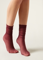 Женские прозрачные короткие носки плотностью 20 ден. Удлиненная верхняя часть. Бортик с необработанным краем.
