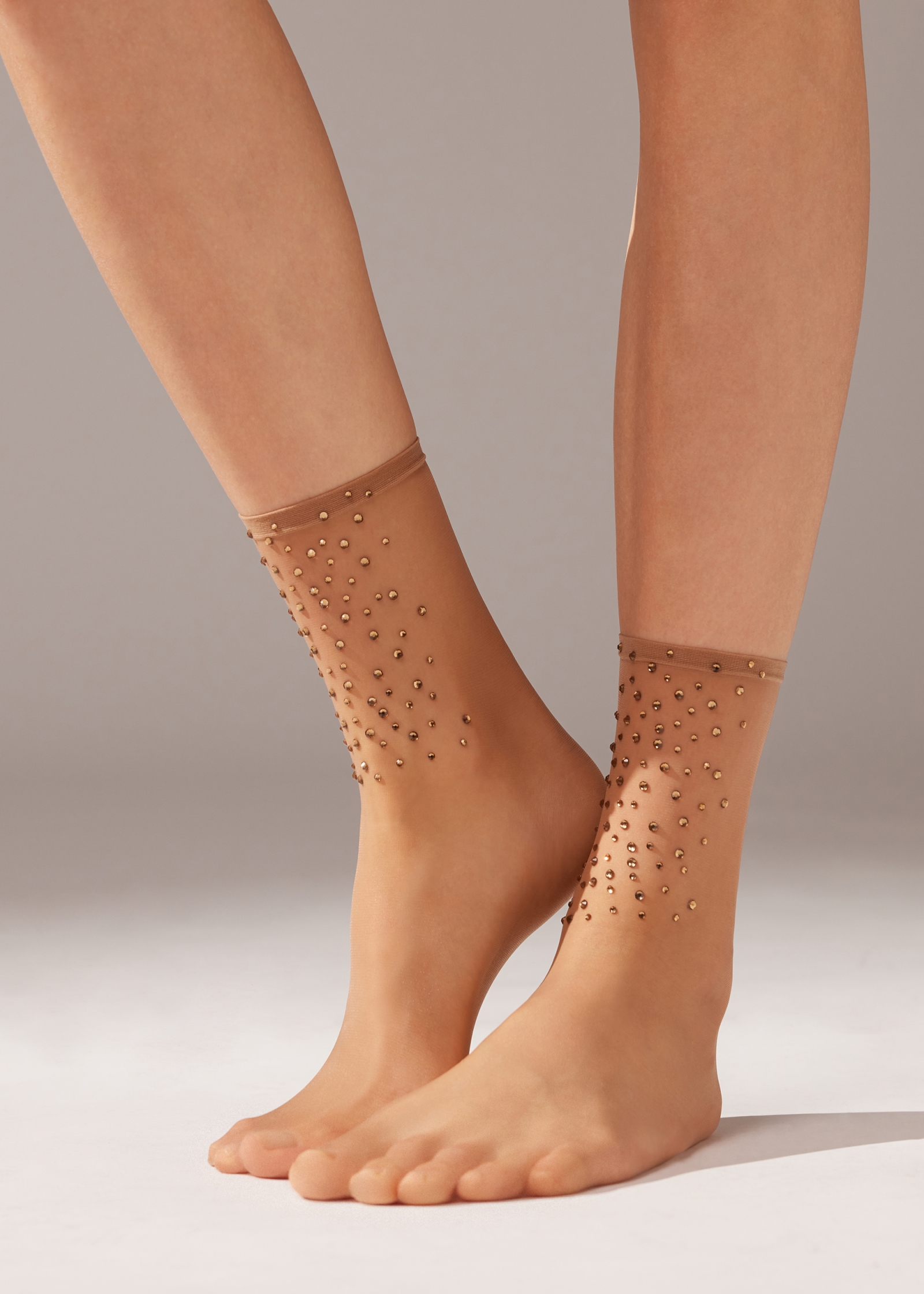 Женские прозрачные носки с блестящими стразами в тон. Плотность 10 ден. Классическая длина. Удобный гладкий бортик.