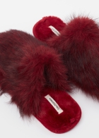 Комнатные тапочки из красной мягкой ткани с эффектом меха. Теплая и уютная модель в новогоднем стиле. Противоскользящее покрытие на подошве обеспечивает устойчивость и безопасность.