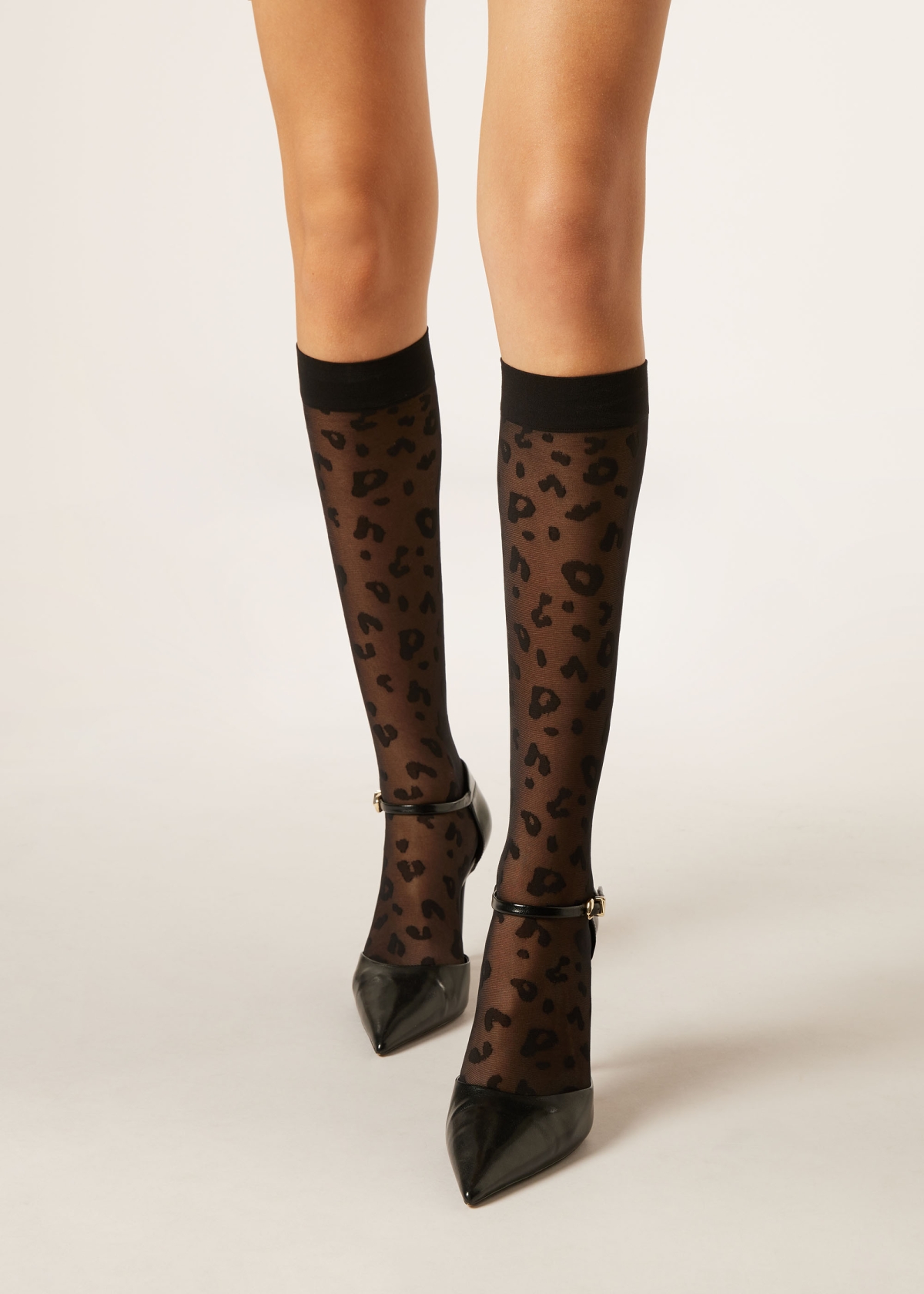 Женские сетчатые гольфы с рисунком в виде сердечек по всей поверхности. Плотность 70 ден. Бортик с волнистым краем придает романтические нотки этой модели.