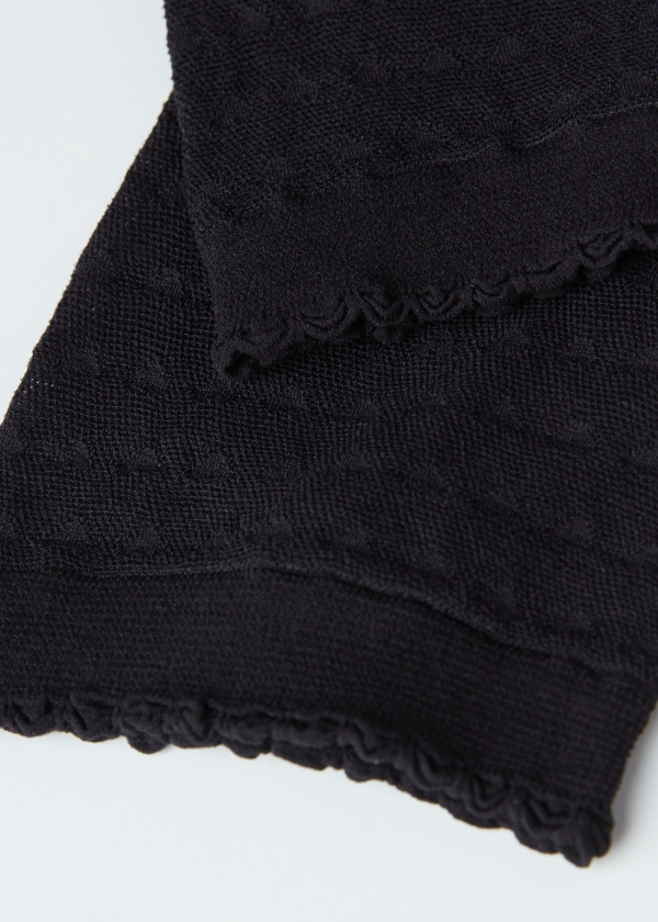 Женские сетчатые носки с рисунком в виде сердечек по всей поверхности. Плотность 70 ден. Классическая длина. Бортик с волнистым краем придает романтические нотки этой модели.