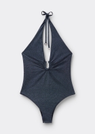 Слитный купальник с глубоким вырезом. Благодаря отсутствию косточек и уплотнителя грудь сохраняет естественный вид. Мягкую ткань с легким блеском и изысканным принтом «питон» тон в тон дополняет элегантный аксессуар по центру груди. Сплошная подкладка с невидимыми швами. Сзади крой в форме слипов.