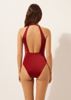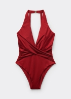 Слитный купальник из мягкой микрофибры. Благодаря отсутствию косточек и уплотнителя грудь сохраняет естественный вид. Спереди глубокий вырез с перекрестными драпированными деталями. Сплошная подкладка. Благодаря невидимым швам изделие прилегает к коже, не нарушая очертания фигуры. Нижняя часть в форме слипов со слегка завышенным вырезом бедра.