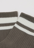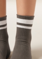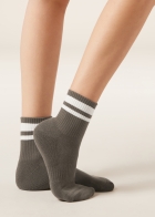 Женские спортивные короткие носки из мягкого хлопка. Махровая подошва обеспечивает максимальный комфорт. Низкий бортик в контрастную полоску придает изделию динамичную нотку. Эти удобные универсальные носки идеально подходят как для спортивных, так и для повседневных образов.