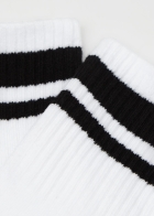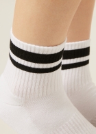Женские спортивные короткие носки из мягкого хлопка. Махровая подошва обеспечивает максимальный комфорт. Низкий бортик в контрастную полоску придает изделию динамичную нотку. Эти удобные универсальные носки идеально подходят как для спортивных, так и для повседневных образов.