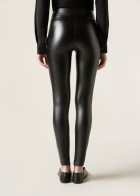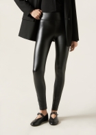 Легинсы из эластичной ткани с эффектом кожи. Высокая талия обеспечивает поддержку и оптимальную посадку по фигуре. Мягкая внутренняя сторона с ворсом приятно прилегает к телу, удерживает тепло и улучшает теплоизоляцию, даря ощущение комфорта. Стильная модель для холодной погоды.