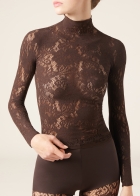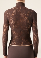 Кружевной топ в сеточку с цветочным узором. Эту изысканную модель с длинными рукавами и цельнокроенным воротником-стойкой можно носить в качестве нижнего слоя под жакетом для создания элегантного образа.