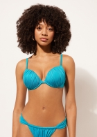 Верх купальника с эффектом пуш-ап. Слегка уплотненные чашки на косточках поддерживают грудь, придавая объем. Блестящая ткань с эффектом шелка. Фиксированные бретели. Застегивается сзади на крючок. Двойная регулировка.