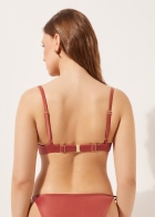 Верх купальника с эффектом пуш-ап. Слегка уплотненные чашки на косточках поддерживают грудь, придавая объем. Блестящая ткань с эффектом шелка. Фиксированные бретели. Застегивается сзади на крючок. Двойная регулировка.