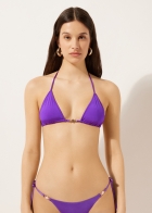Верх купальника треугольник со скользящими чашками и съемными вкладышами, без косточек. Минималистичная модель подчеркивает силуэт, внося в образ изысканные чувственные нотки. Блестящую ткань с эффектом шелка дополняют элегантные золотистые детали, вызывая ощущение сдержанной роскоши. Бретели с петлей на конце можно закрепить на поясе или завязать на шее. Тонкие завязки сзади позволяют регулировать посадку изделия. Идеальный выбор для создания изысканного и неотразимого летнего образа.