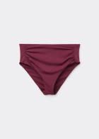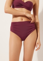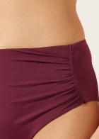 Плавки со слегка завышенной посадкой и драпировкой на боку. Вставка из тюля обеспечивает утягивающий эффект в области живота. Благодаря особой мягкости ткани изделие приятно прилегает к коже, создавая ощущение легкости и комфорта. Сплошная подкладка и невидимые швы.