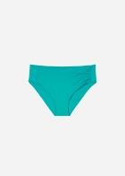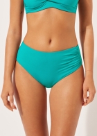 Плавки со слегка завышенной посадкой и драпировкой на боку. Вставка из тюля обеспечивает утягивающий эффект в области живота. Благодаря особой мягкости ткани изделие приятно прилегает к коже, создавая ощущение легкости и комфорта. Сплошная подкладка и невидимые швы.