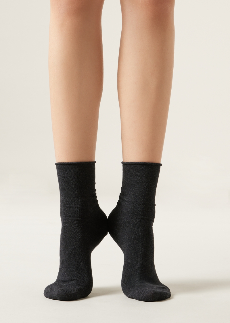 - Укороченные носки с высотой до косточки хорошо сочетаются с кроссовками, низкими кедами и другой повседневной обувью.
